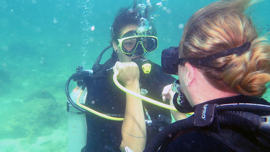 หลักสูตรรวบรัดให้คุณได้ลงไปสัมผัสโลกใต้ทะเลตัวต่อตัวกับครูฝึก ใช้เวลาครึ่งวันหรือเต็มวัน คุณเพียงทำหน้าที่หายใจตามปกติ ที่เหลือครูฝึกจะจัดการให้ค่ะ หากคุณชอบใจ มาทะเลคราวหน้าลงทะเบียนเรียนได้เลยค่ะ